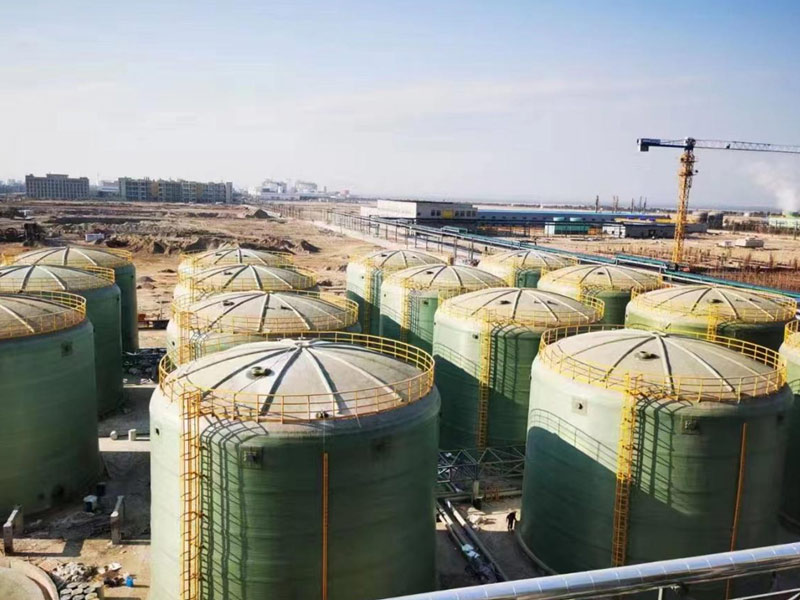 大型玻璃钢储罐以热固性树脂为基体材料,玻璃纤维为强材料,采用连续纤维进行螺旋缠绕,工艺先进,结构合理。具备一般玻璃钢储罐的轻质高强、耐化学腐蚀、使用寿命长的特点。